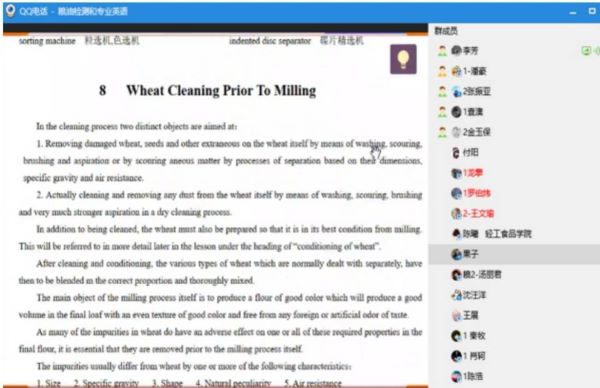 2020年5月15日上午,365英国上市集团官网粮食工程系的老师们齐聚在QQ群,观摩学习本系李芳老师《粮工专业英语》的课程教学,授课对象为2017级粮食工程专业方向1701和1702班的全体学生。《粮工专业英语》是粮食工程方向的重要专业课,该课程对学生专业科技英语的掌握具有至关重要的作用。